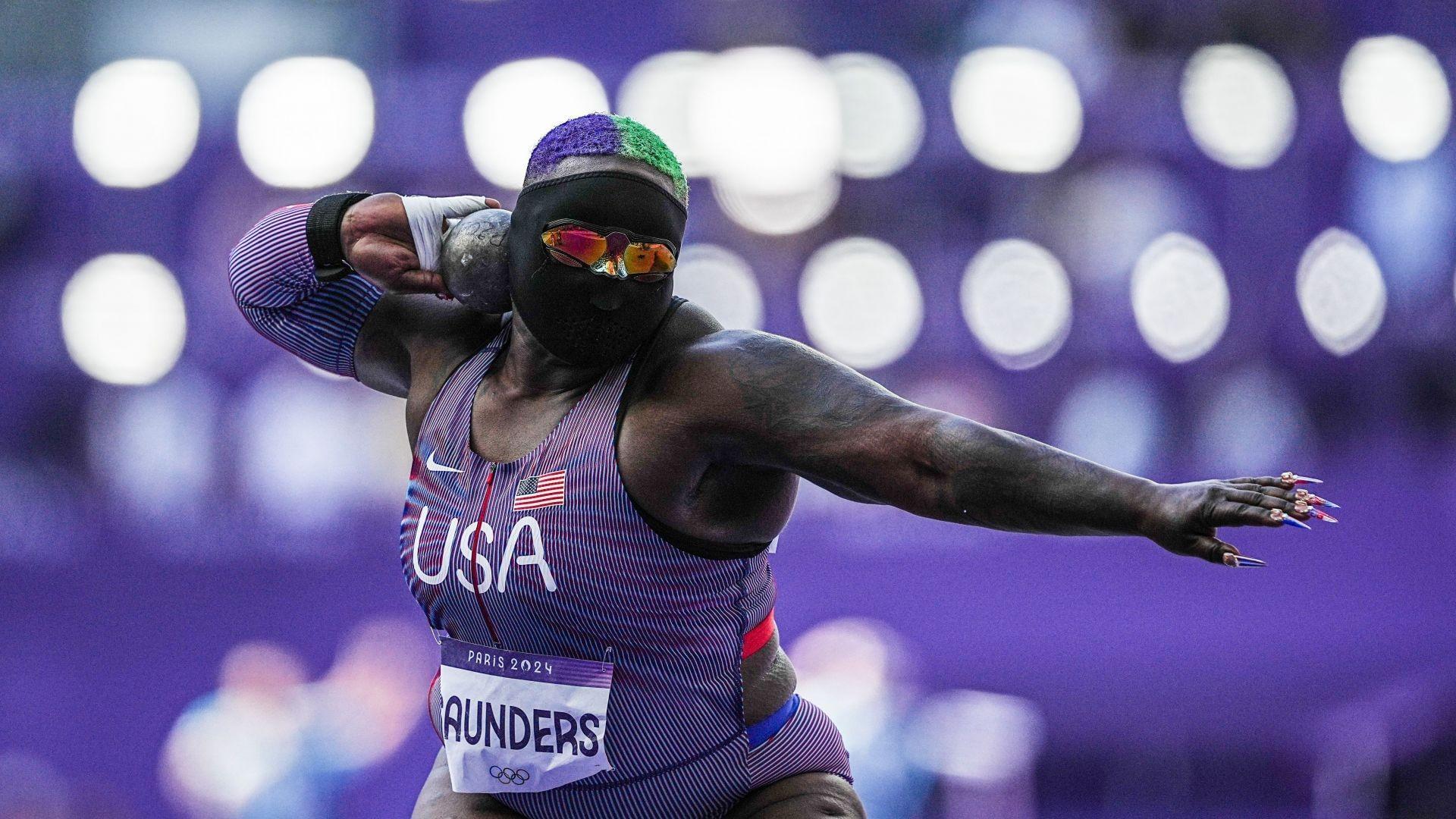 巴黎奥运会期间,桑德斯曾以全黑面具和墨镜完全遮盖面容的方式参加铅球资格赛,引发关注。她解释称此举旨在提升大众对铅球项目的关注度。